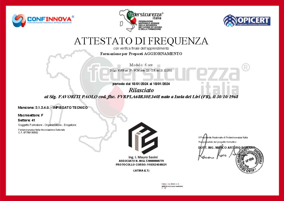 Attestato da Preposto